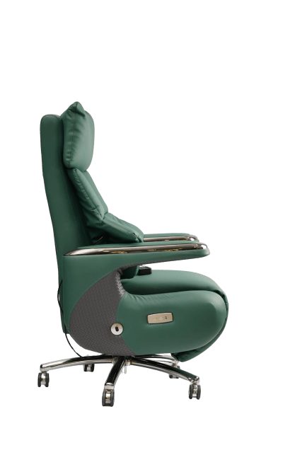 Premium masaj kreslosunun qolları da eyni dərəcədə rahatlıq və keyfiyyət prinsipləri ilə hazırlanıb. Dəri örtüklü qol hissələri istifadəçinin əllərini tam şəkildə dəstəkləyərək rahat istirahət təcrübəsi yaradır. Masaj funksiyası işlədiyi zaman qolların bu dəstəyi bədənin balansını qorumağa kömək edir. Dəri örtük həm estetik görünüşü tamamlayır, həm də təmas zamanı istilik balansını qoruyur. Bu xüsusiyyət uzunmüddətli istifadədə belə narahatlıq yaratmır. Hər iki qol hissəsi insan anatomiyasına uyğun bucaq altında yerləşdirilib. Bu da həm funksionallığı, həm də komfortu artırır. Qol hissələrinin yüngül yumşaqlığı, masaj zamanı relaksasiyanı maksimum səviyyəyə çatdırır.