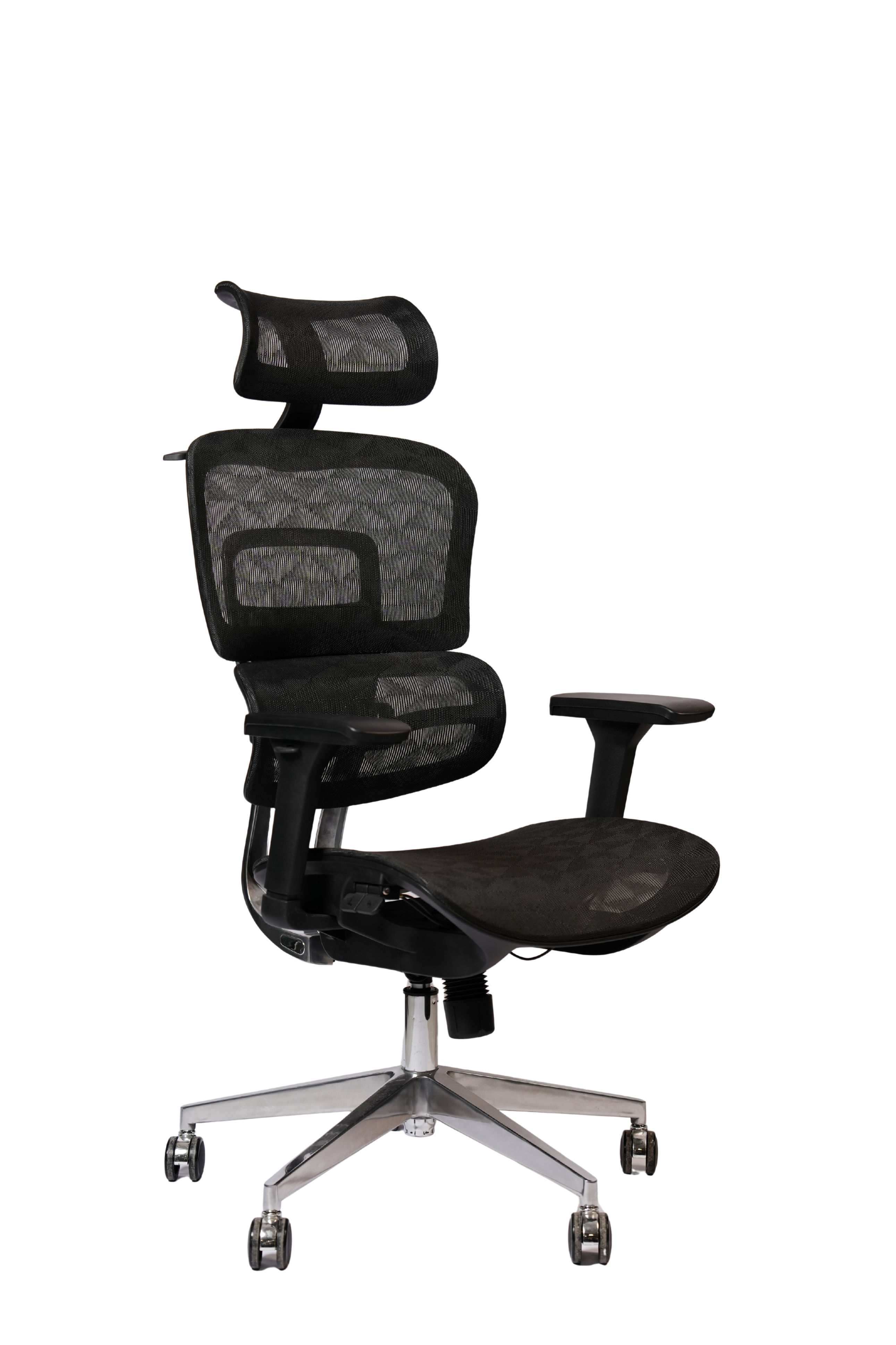 Kreslonun ayaq hissəsi yüksək keyfiyyətli alüminiumdan hazırlanmışdır ki, bu da həm möhkəmlik, həm də estetik görünüş qazandırır. Alüminium konstruksiya kreslonun uzunömürlülüyünü təmin edir və paslanmaya qarşı tam davamlıdır. Təkərləri səssiz hərəkət etməklə ofis döşəməsinə zərər vermir. Geniş baza isə istifadə zamanı maksimum sabitlik yaradır. Bu həm təhlükəsizlik, həm də dayanıqlılıq baxımından əhəmiyyətli üstünlükdür.